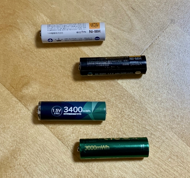 少し前までは充電式電池で1.5Vのものはなかった、仕方なく1.2Vのニッケル水素電池で乾電池の代用をしていた。最近1.5Vの乾電池サイズの充電池を見つけ早速使ってみた。想像以上に長持ちであった。